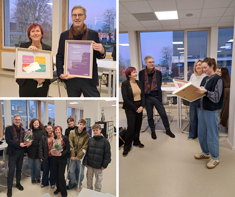 Zowel het leerkrachtenteam als de leerlingenraad verrasten hen met een welverdiend cadeautje als dank voor hun dagelijkse inzet en leiderschap. Een dikke merci voor alles wat jullie voor onze school doen!